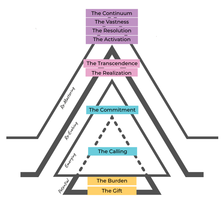 Serving as a guidance map for continual and evolutionary change, the Visionary’s journey contains ten ascending stages which fall into four main visionary expressions – Potential, Emerging, Re-Evolving and Re-Mastering. Identifying where you are now and having a glimpse of where you are going inspires you to evolve more rapidly through your visionary’s journey.